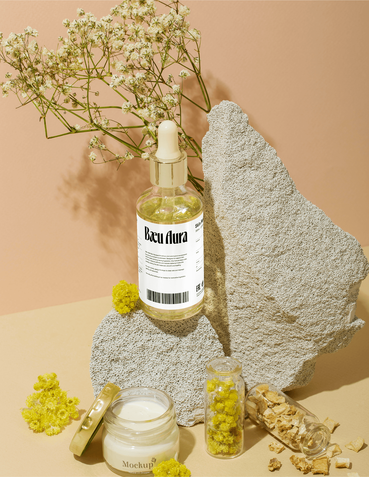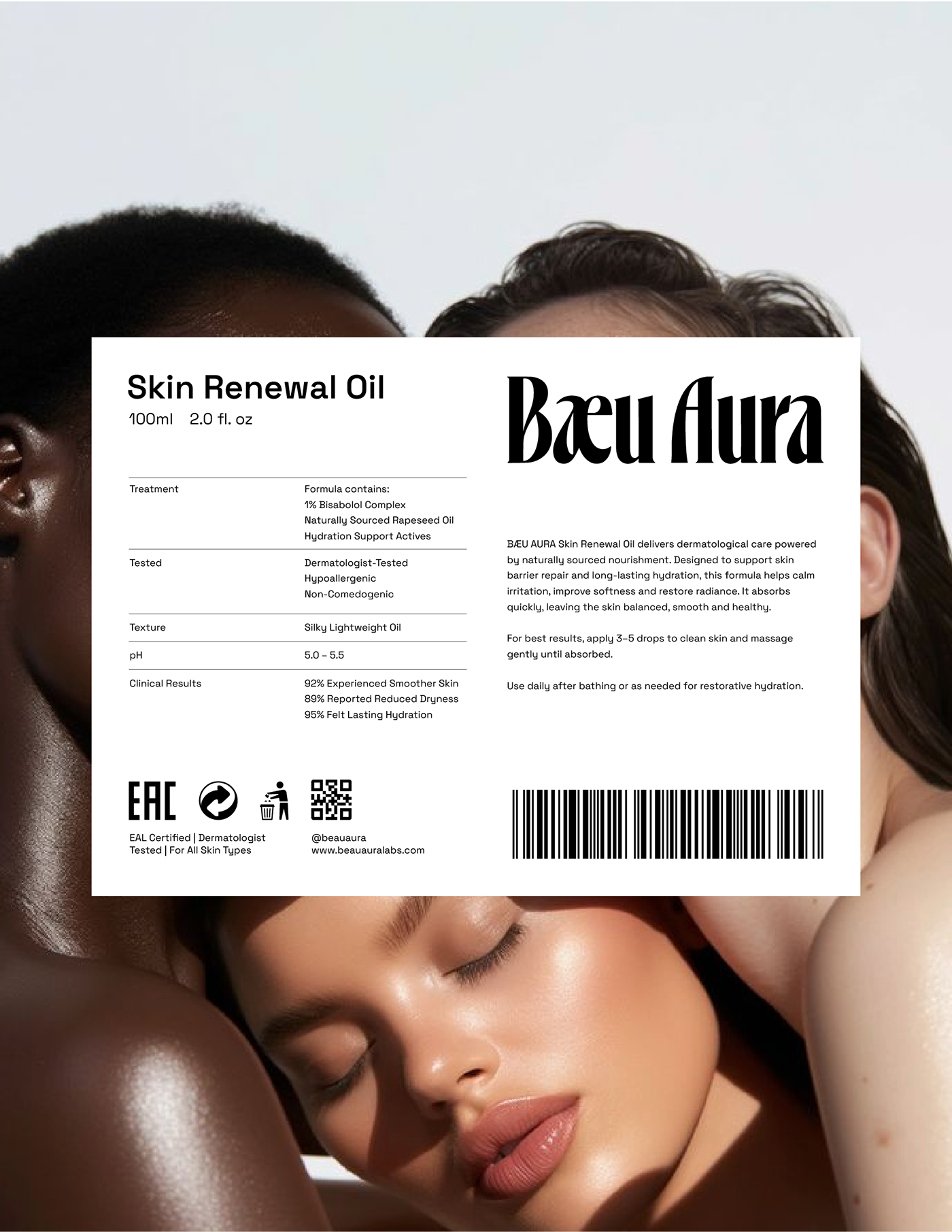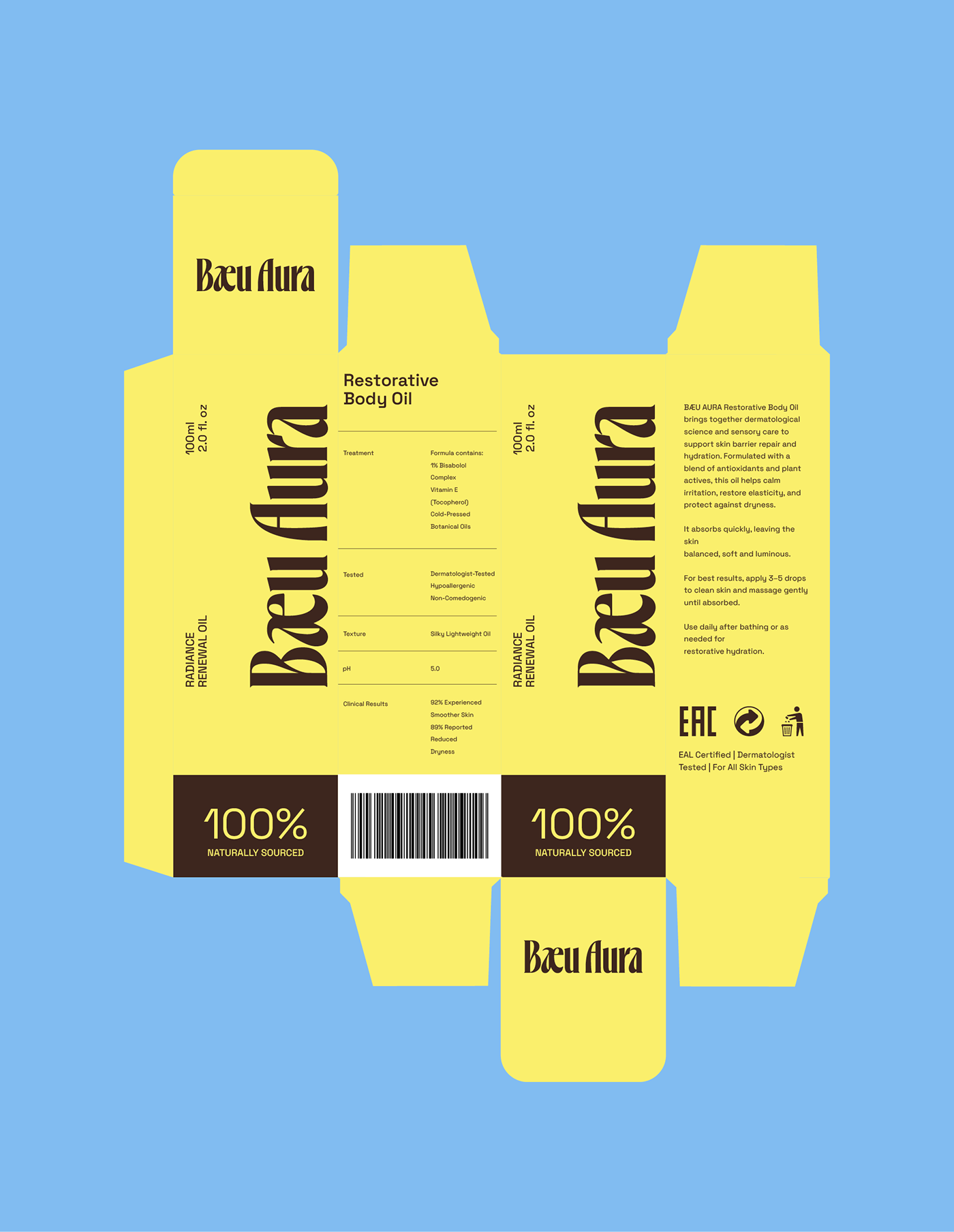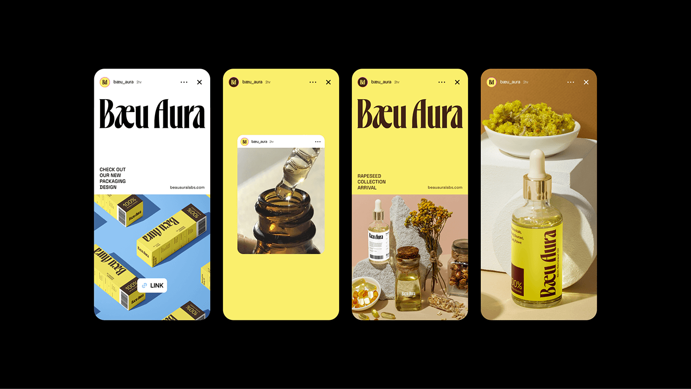Bæu Aura is a herbal-clinical skincare brand built around Skin Renewal Oil — a body oil made from naturally sourced rapeseed and enhanced through dermatological formulation. This project covers the complete brand identity system, visual direction, packaging strategy and product presentation. The goal was to create a feminine aesthetic that balances natural beauty with medical precision, resulting in a skincare brand that feels gentle, trustworthy and results-driven.