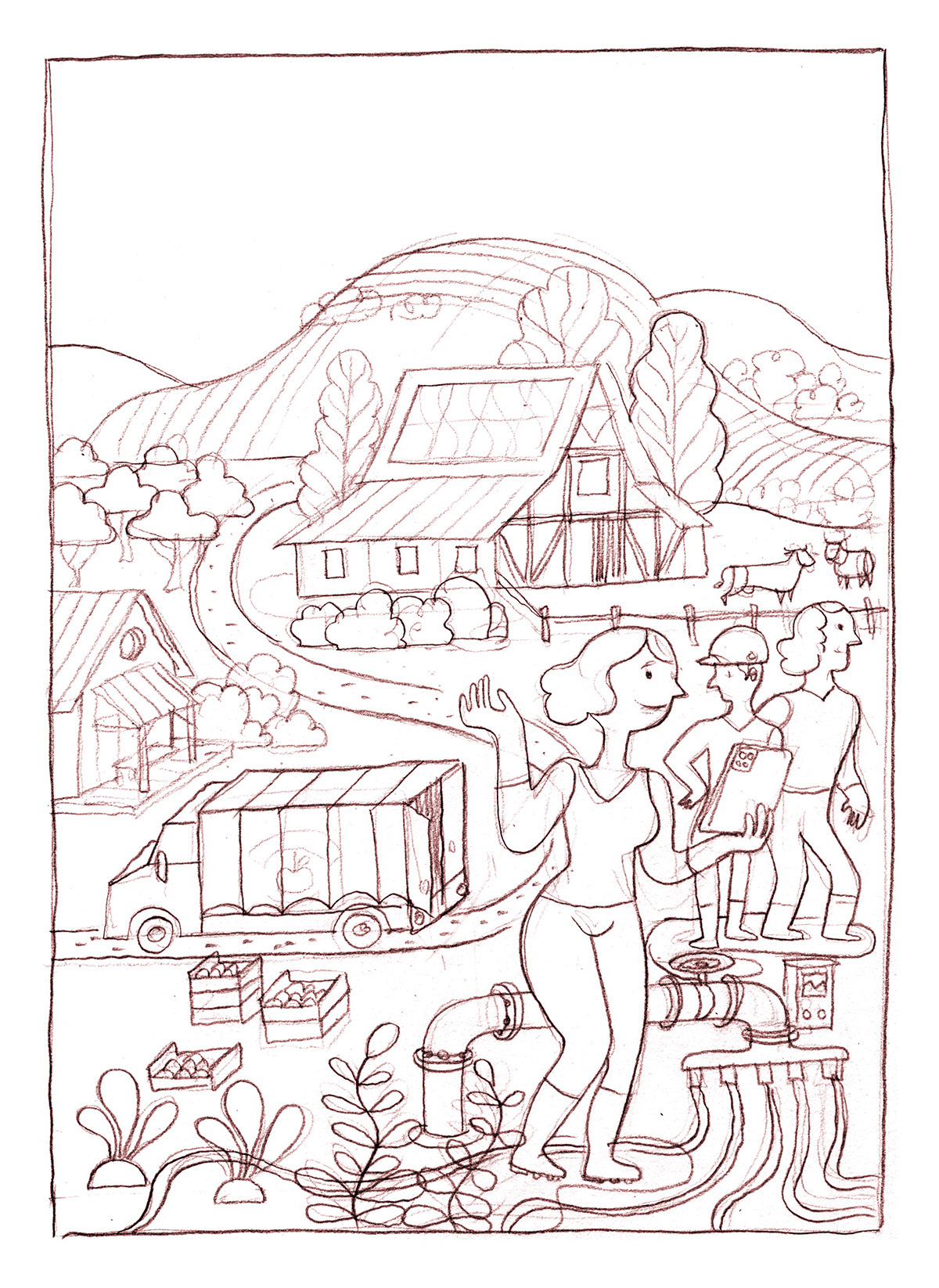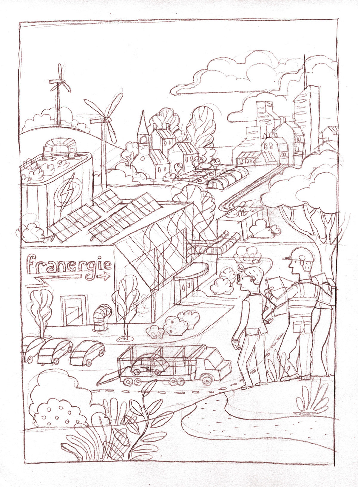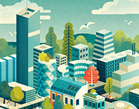 J'ai réalisé une couverture et sept illustrations pour illustrer ce rapport "d'entreprises pour l'environnement", qui concerne le champ des possibles, ce que notre société pourrait devenir une fois la transition écologique achevée.