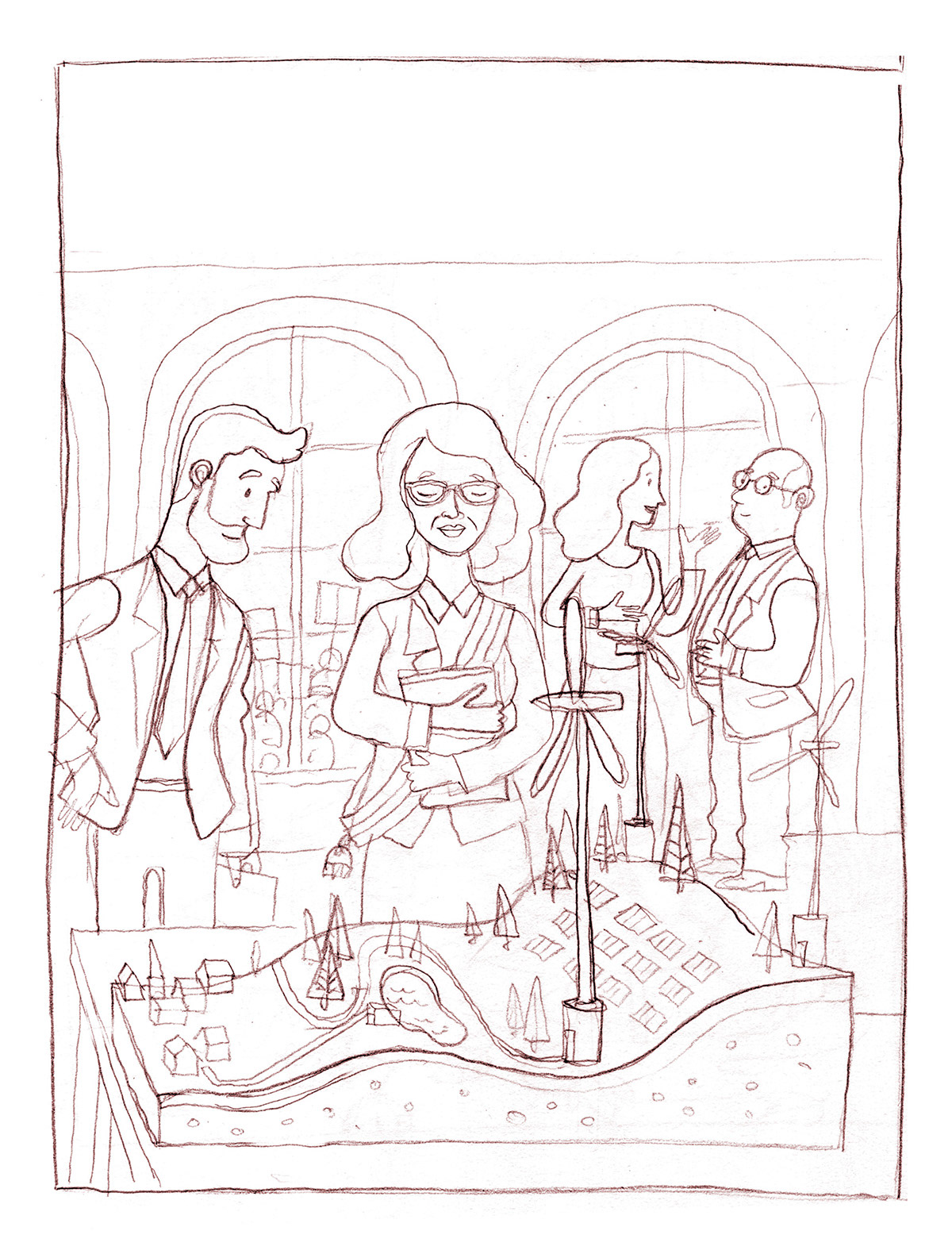 J'ai réalisé une couverture et sept illustrations pour illustrer ce rapport "d'entreprises pour l'environnement", qui concerne le champ des possibles, ce que notre société pourrait devenir une fois la transition écologique achevée.